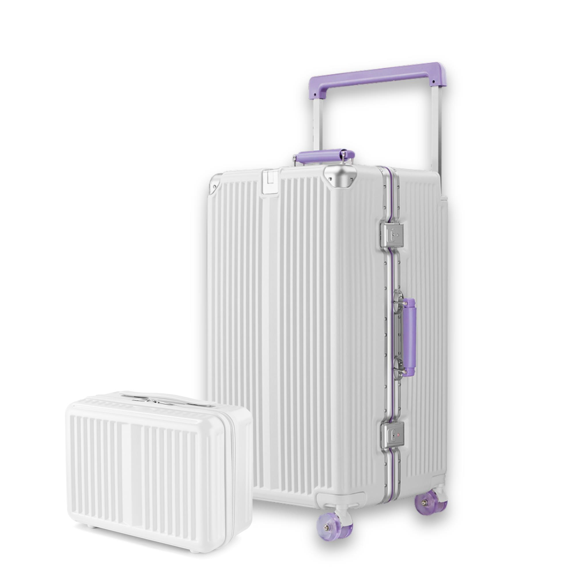 Zeplin Boxy PC Policarbon 2'li Valiz Seti (Kabin ve Makyaj) Beyaz-Mor