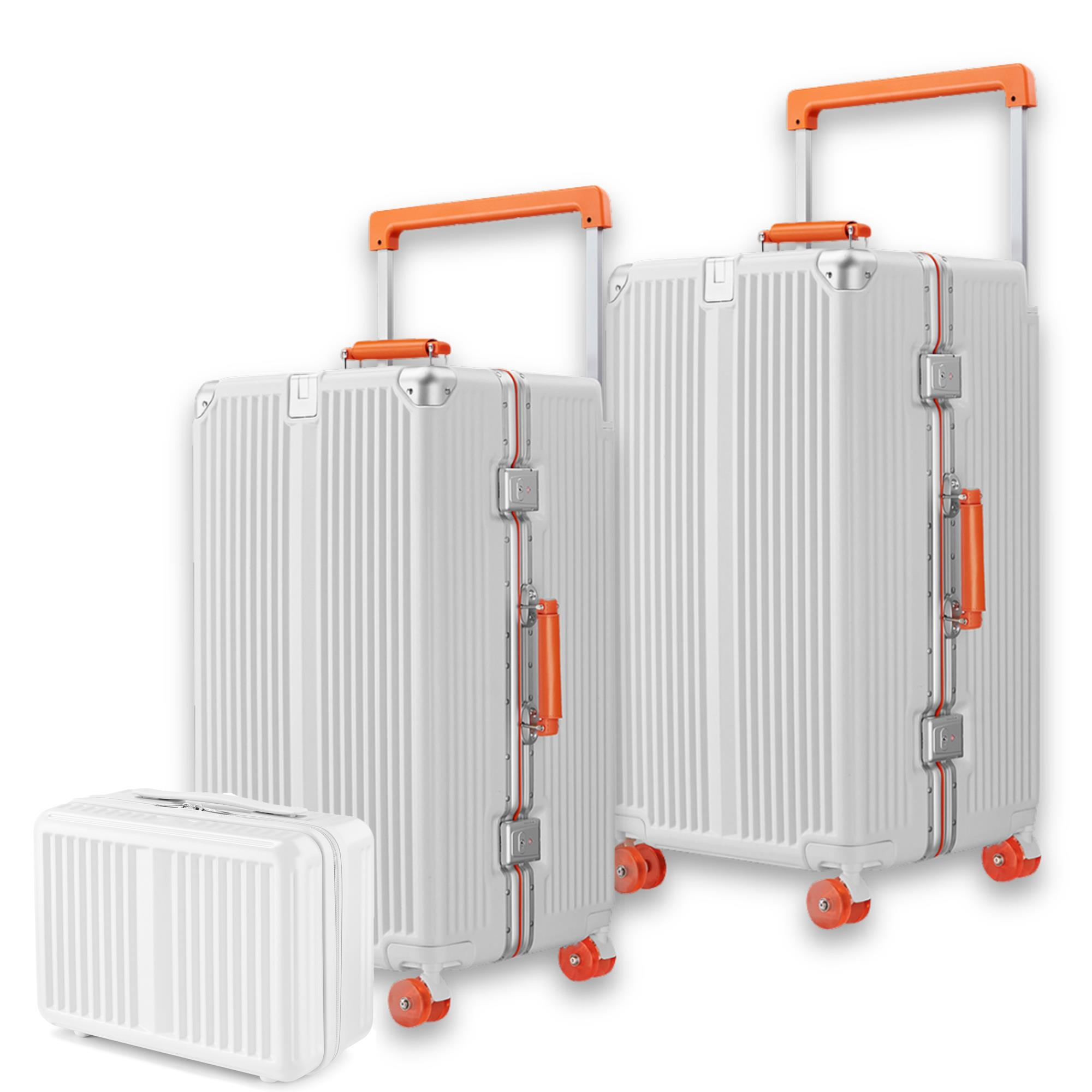 Zeplin Boxy PC Policarbon 3'lü Valiz Seti (Kabin Orta ve Makyaj) Beyaz-Turuncu