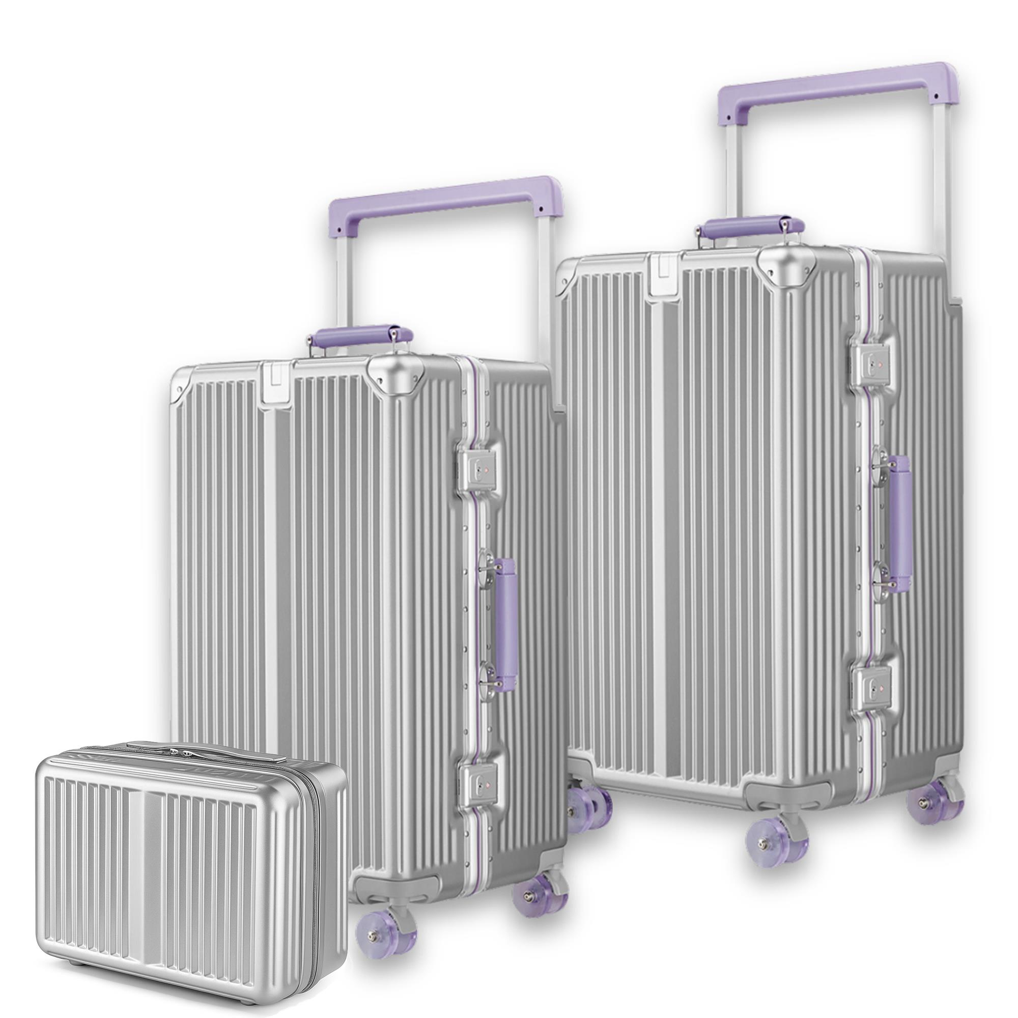 Zeplin Boxy PC Policarbon 3'lü Valiz Seti (Kabin Orta ve Makyaj) Silver-Mor