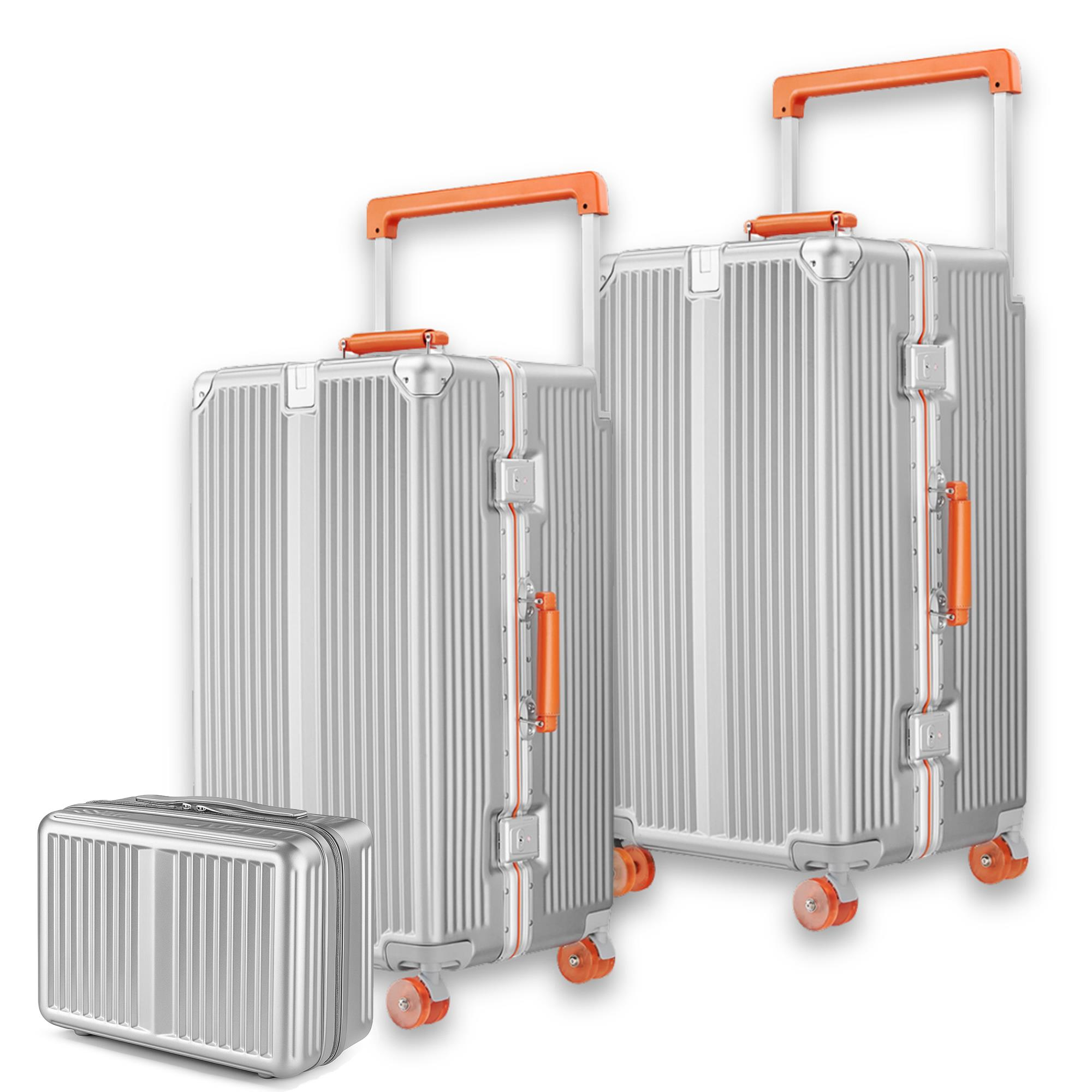 Zeplin Boxy PC Policarbon 3'lü Valiz Seti (Kabin Orta ve Makyaj) Silver-Turuncu