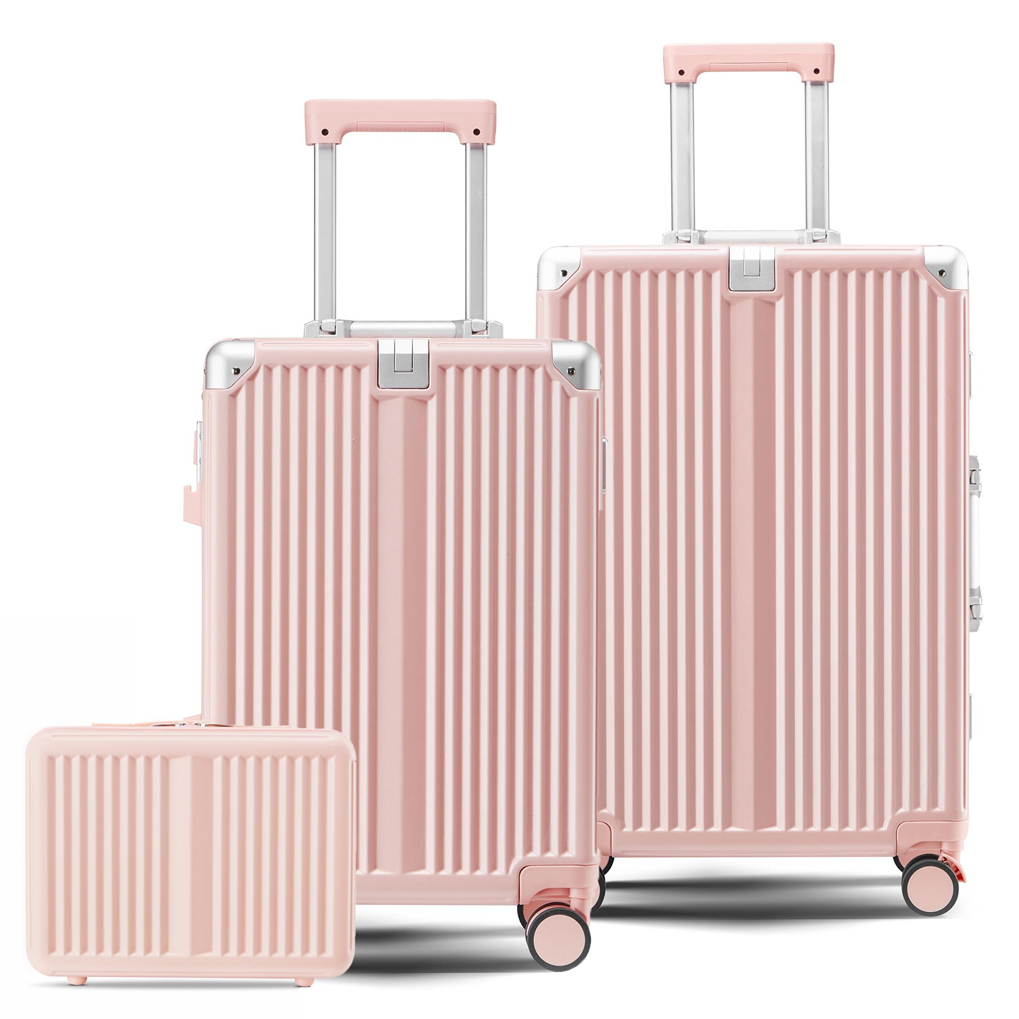 Zeplin Joya PC Policarbon 3'lü Valiz Seti (Kabin Orta ve Makyaj) Pembe